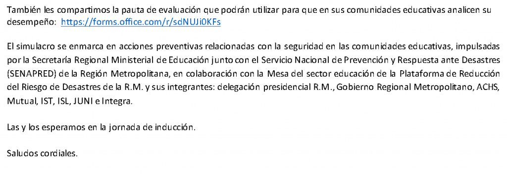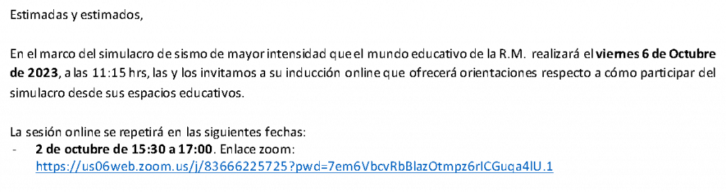 Inducci贸n Simulacro Sismo – 6 de octubre